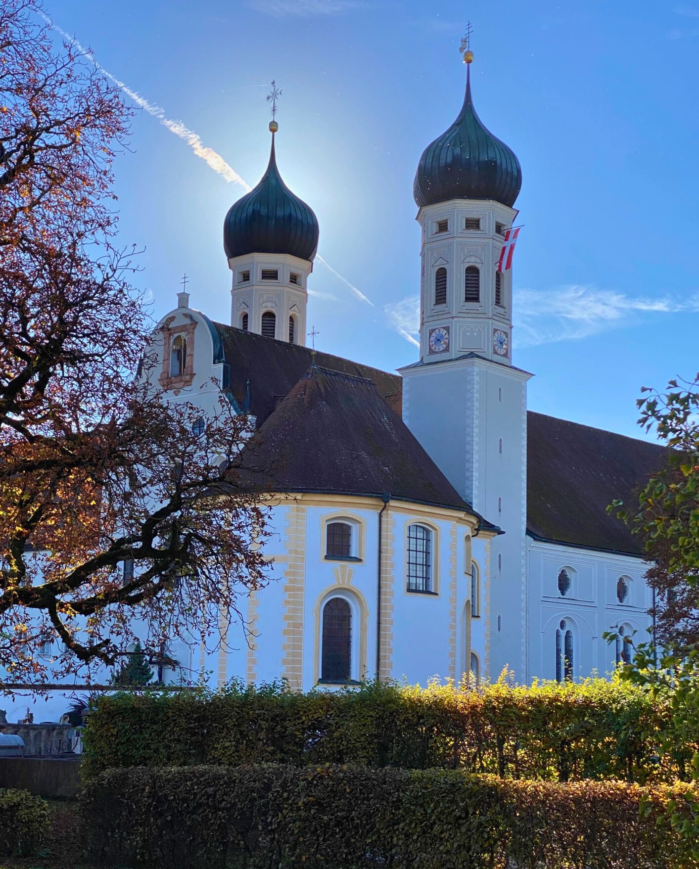 Die ehemalige Klosterkirche und jetzige Pfarrkirche St. Benedikt mit dem ersten in Freskotechnik geschaffenen Deckenbild Georg Asams wurde 1681-1686 erbaut.