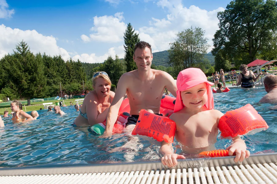 Das beheizte Freibad erwartet Sie mit Edelstahlbecken und bietet