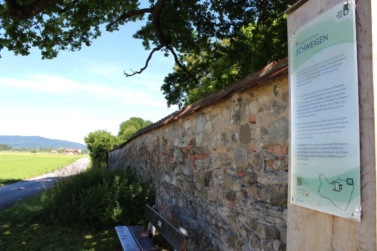 Der Benediktusweg in Benediktbeuern verläuft durch wunderschöne Natur rund um die Klosteranlage und besteht aus zwölf Stationen mit Impulsen aus der Regel Benedikt. Auf den Stelen befinden sich Texte zu den wesentlichen Themen, die dem Ordensvater Benedikt besonders am Herzen lagen und auch Bezug zu ihrem jeweiligen Standort haben. Über einen QR-Code auf jeder Stelentafel erhält man weitere Erläuterungen zum jeweiligen Themenkomplex. Zusätzlich sind diese Texte auch als Audiodateien zum Anhören abrufbar.