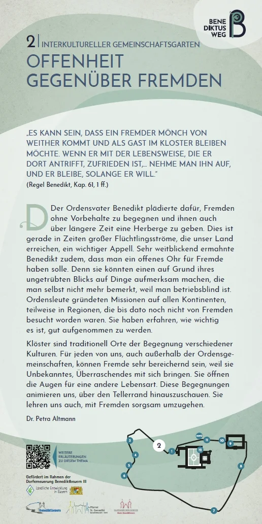 Der Begriff „Fremder“ drückt zunächst einmal Distanz aus. Ein Fremder ist eine unbekannte Person. Man weiß nicht, was von ihr zu erwarten ist. Ihr Verhalten könnte auf uns „befremdlich“ wirken, deshalb sind wir versucht, uns zunächst einmal bedeckt zu halten. Für den Ordensvater Benedikt war es jedoch nicht nur selbstverständlich, Fremde aufzunehmen und sie möglicherweise auch über einen längeren Zeitraum zu beherbergen. Er ermahnte sogar, auf die Hinweise von Fremden besonders zu achten: „Sollte er (der Fremde) in Demut und Liebe eine begründete Kritik äußern oder auf etwas aufmerksam machen, so erwäge der Abt klug, ob der Herr ihn nicht vielleicht gerade deshalb geschickt hat.“ (Regel Benedikt, Kap. 61, 4)