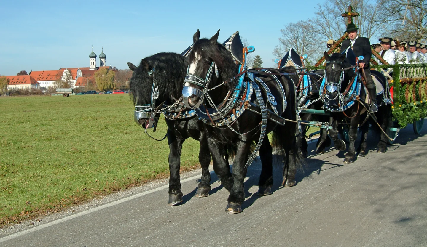 Beginn der Wallfahrt ist wie bisher um 9.00 Uhr im Bereich der Schwimmbadstraße. Die Wallfahrt mit etwa 49 Wagen und circa 230 Pferden führt über die Dorfstraße, Bahnhofstraße und Don-Bosco-Straße. Auf Höhe des Klostersportplatzes findet die Segnung statt. Die Gespanne stehen heuer nicht im Klosterinnenhof, sondern im Bereich der Don-Bosco-Straße südlich des Großparkplatzes.