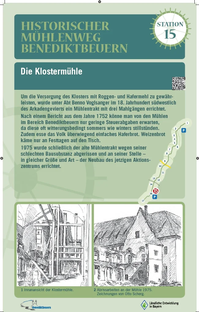 Den wohl umfassendsten Einblick in die Geschichte des Klosters Benediktbeuern gibt die 1991 vom Max-Plank-Institut für Geschichte herausgegebene „Germania Sacra“. Hier beschreibt Joseph Hemmerle auf den Seiten 323 bis 325 auch die Mühlengeschichte des Klosters. Die Datenmenge des Buchs wäre hier viel zu groß zum Herunterladen, deshalb der Tipp: zu Hause nachlesen, es lohnt sich!